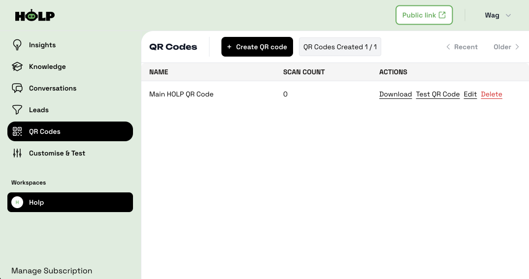 Here’s how to create and manage QR codes in HOLP:
