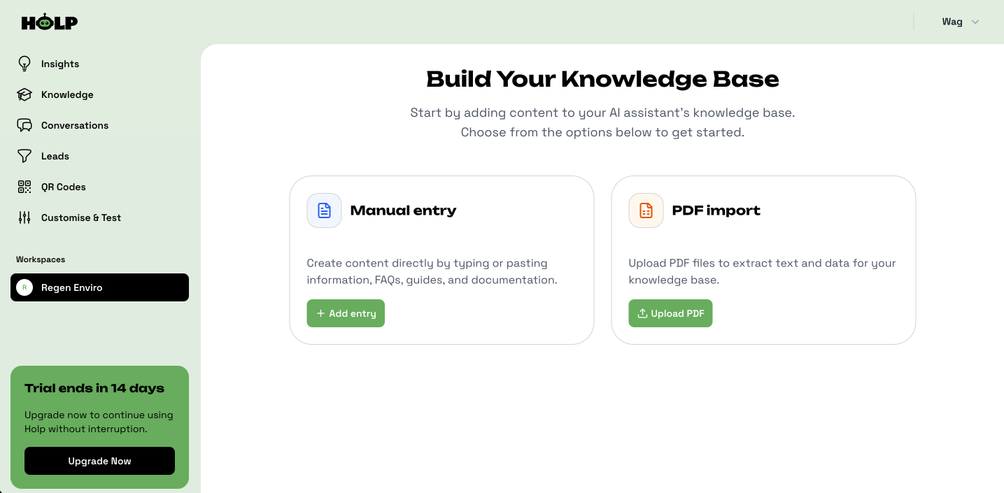 If you’ve just finished adding knowledge, this is the perfect next step. But if you’ve landed here directly, don’t worry, you can customise HOLP anytime, no matter how much (or how little) knowledge you’ve already added.